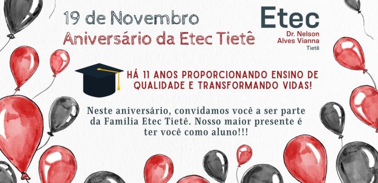 dia 19 de novembro, a ETEC “Dr. Nelson Alves Vianna” celebra seus 11 anos de